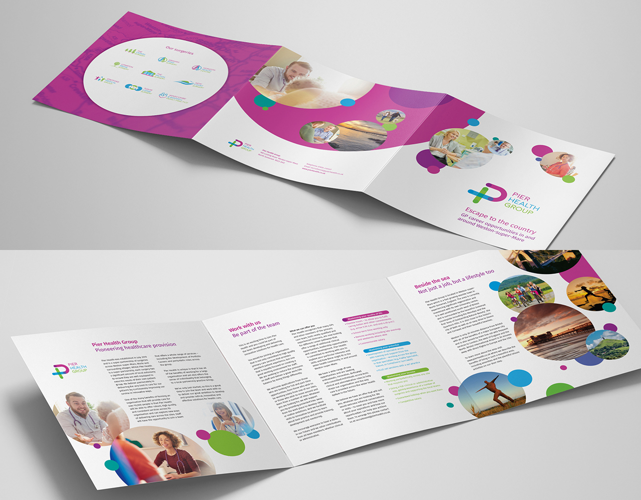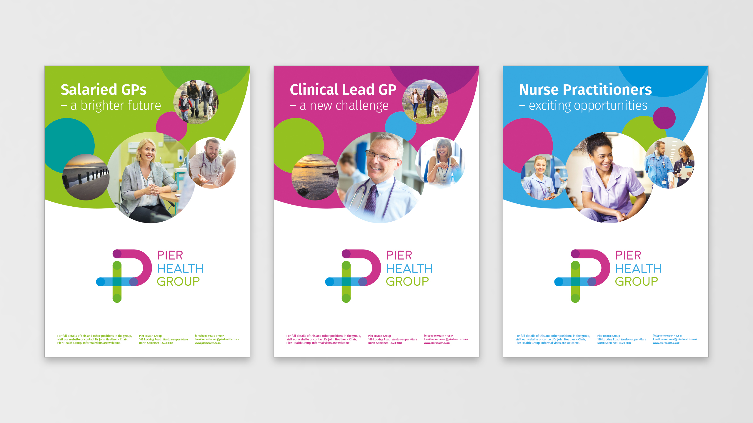 They had already settled on a name – Pier Health Group – but needed help with designing and implementing a brand across a variety of communications. The new brand identity had to work for a range of stakeholders, especially in a commercial space outside of their general GP practice audience.
